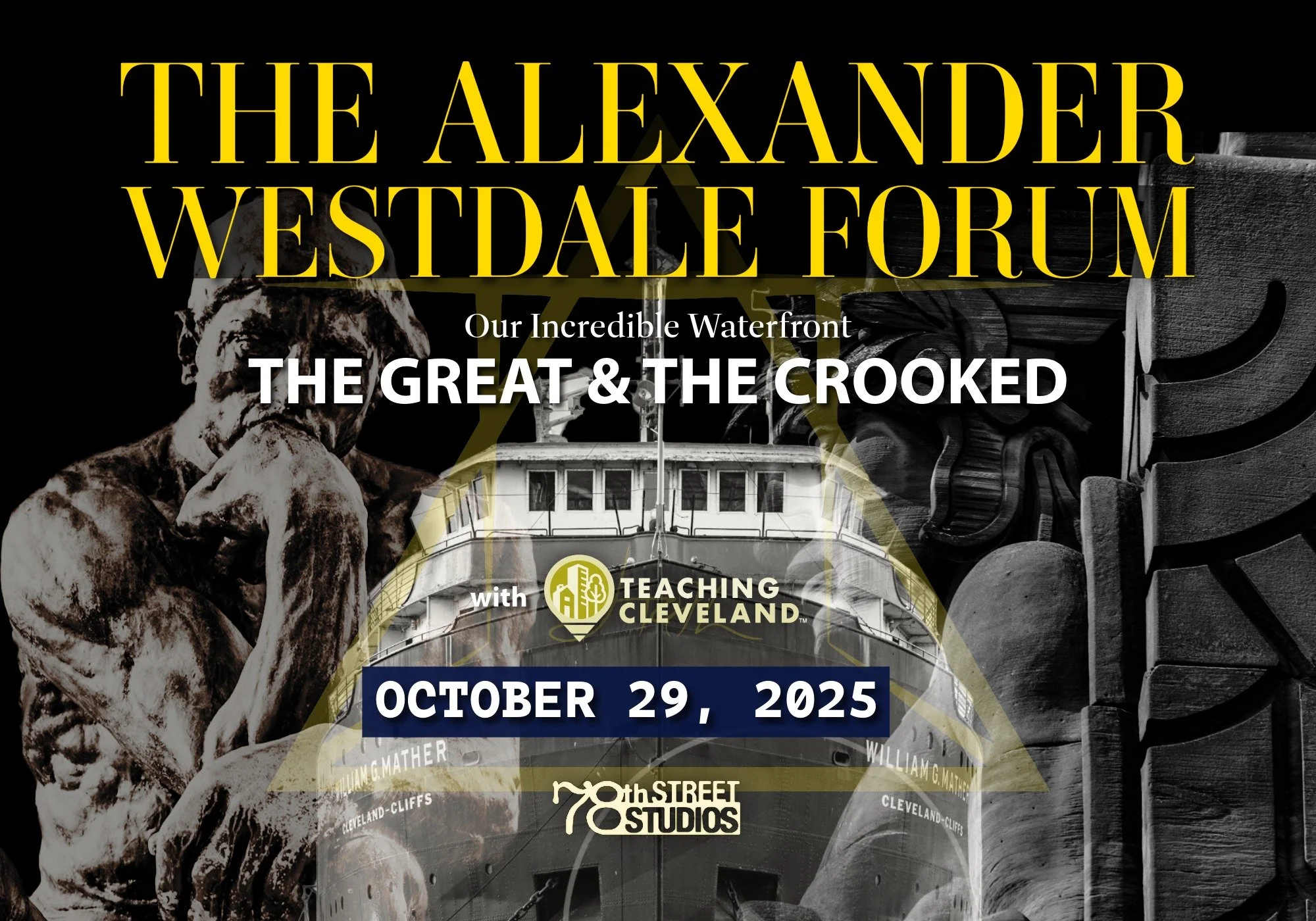 I’m opening the studio for the creative conversation series of The Alexander Westdale Forum. The title of this conversation: The Great and The Crooked, joined by Cleveland historians and experts from Teaching Cleveland we’ll be focused on Cleveland’s waterfront and waterways… the great Lake Erie and the crooked Cuyahoga River. Join us as we dive into their history, explore their future, and what our role and responsibilities are. This isn’t a history lecture or a talk on economic development, it’s an engaging conversation of culture, art, rhythm, psychology, merged with history and economic development. Special guest contributors to be announced leading up to the event will include people like artists, psychologists, community leaders, and enthusiasts.