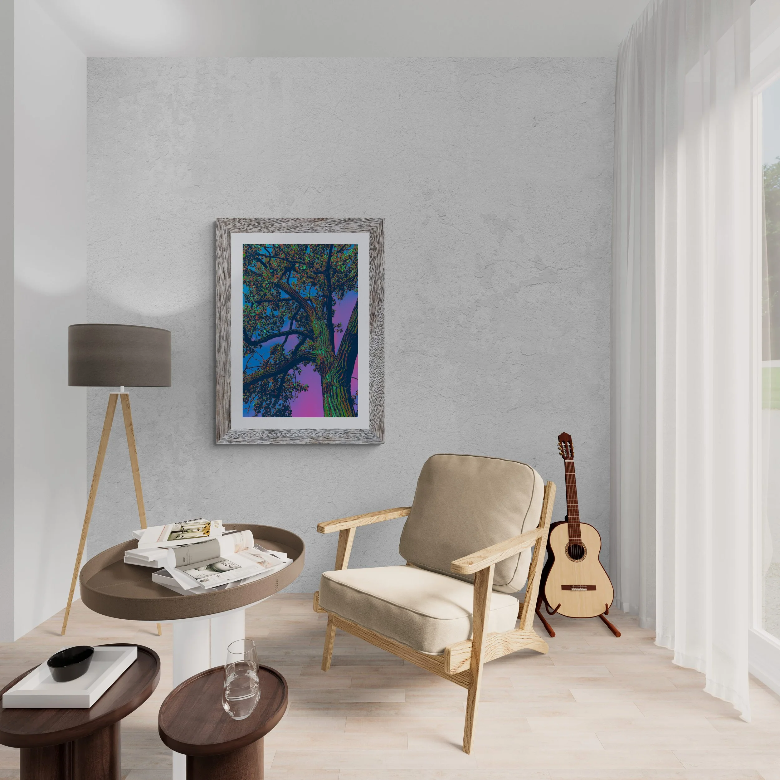 "Take My Hand" a vibrant photographic artwork creation that delicately portrays a tree, its branches reminiscent of an outstretched hand, beckoning to us with a subtle yet powerful plea. The solemn purple hues of the artwork evoke a contemplative mood, inviting us to reflect on the profound connection between humanity and Mother Nature.